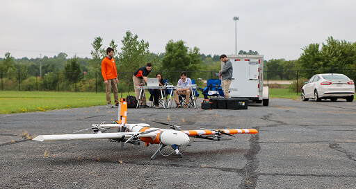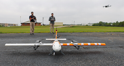This Group 2 UAS employs an LPC architecture—dedicated lift propulsors for vertical flight and a cruise propulsor for forward flight—enabling efficient VTOL-to-FF transition while preserving fixed-wing cruise performance. The airframe is largely 3D-printed to reduce cost and lead time while supporting rapid, iterative design cycles. A real-time MATLAB/Simulink simulation environment (VISTA) serves as the vehicle’s digital twin for trim analysis, model linearization, and controller design, and is integrated with hardware and visualization for seamless simulation-to-flight workflows. The flight control stack follows a modular architecture—inceptor mappings, a Trajectory Control System (TCS) middle loop, Explicit Model-Following (EMF) inner loops, and an intuitive control allocation—supporting testing across VTOL, transition, and forward-flight modes.